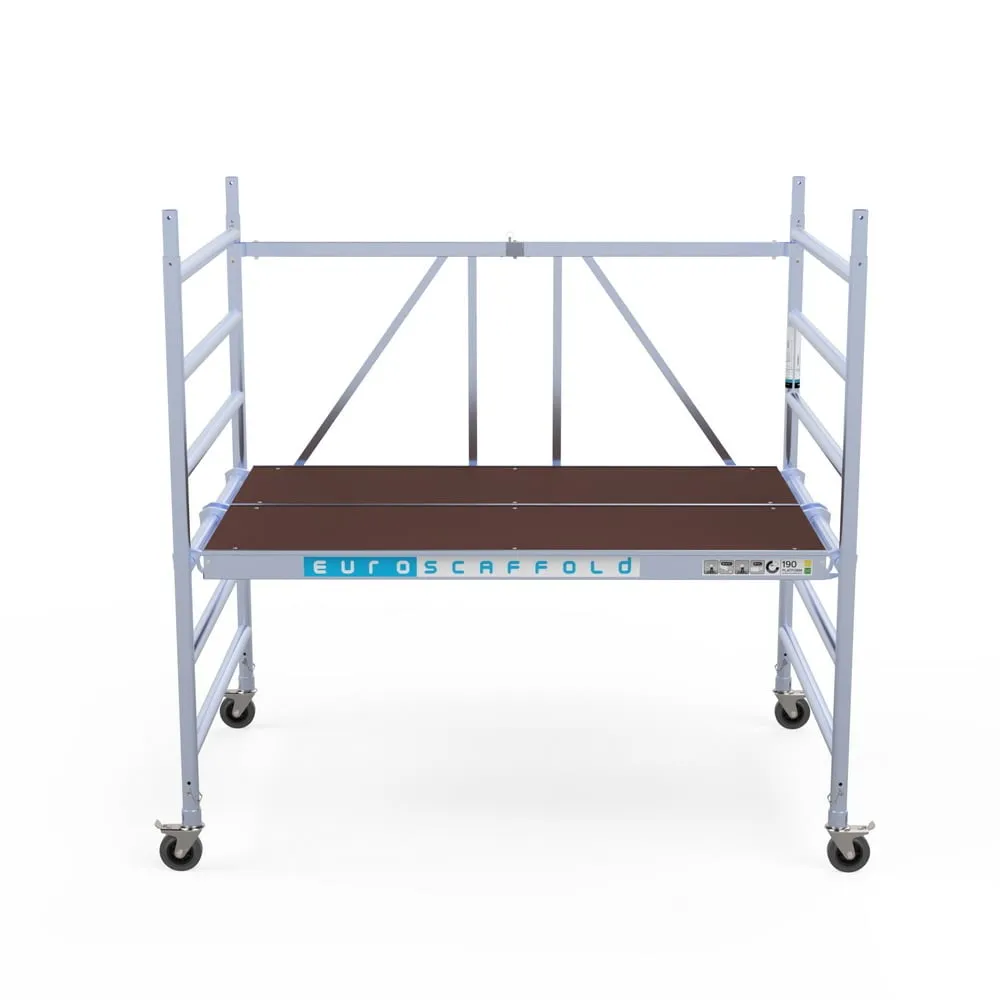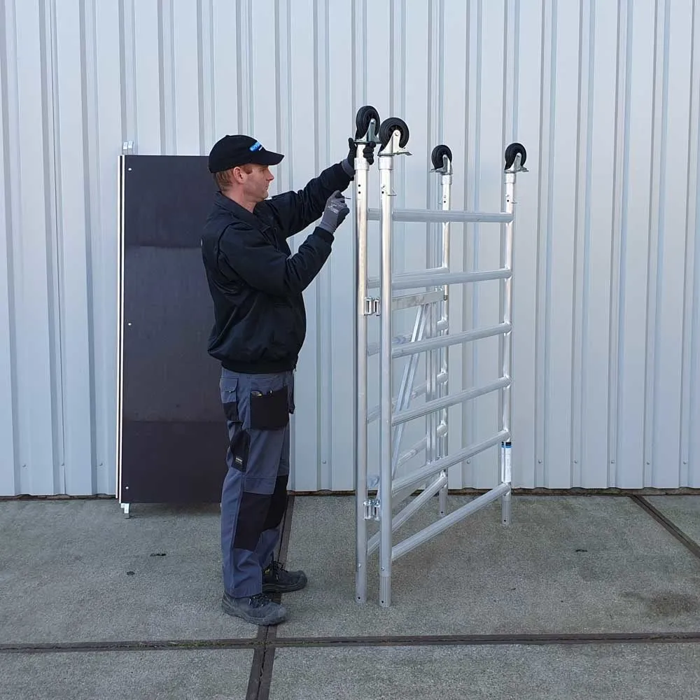 Rusztowanie wewnętrzne serii CT26 o szerokości 135 cm i długości 190 cm - wysokość robocza 3 m, to konstrukcja, która zagwarantuje stabilną pracę. Rusztowanie można złożyć w ciągu kilku minut oraz rozbudować do żądanej wysokości, a łączna szerokość platformy ułatwi organizację pracy.