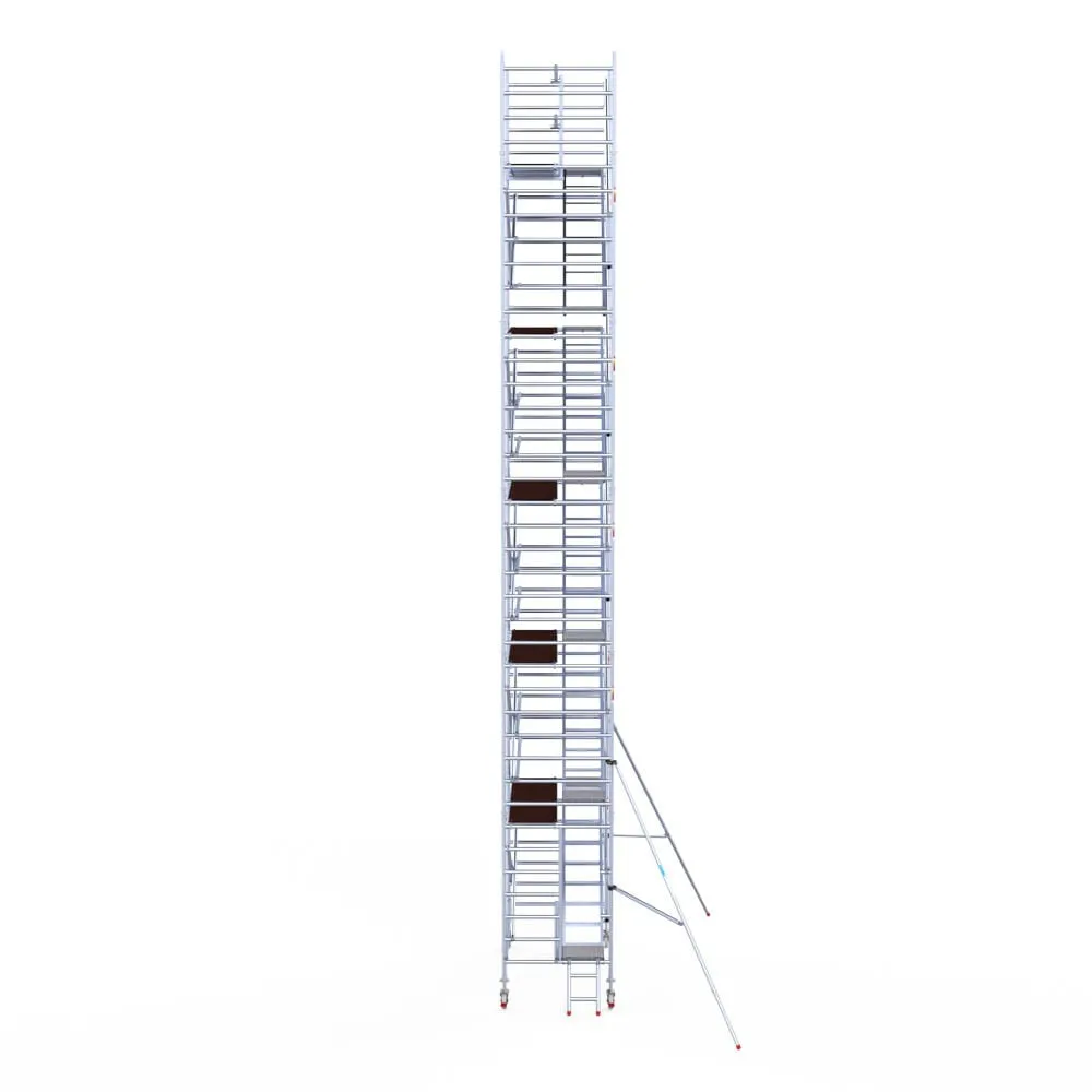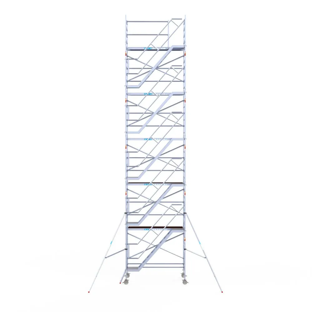 Wieża schodowa o szerokości 135 cm i długości 250 cm to gwarancja wygody i bezpieczeństwa. Wygodnie wniesiesz sprzęt oraz bezpiecznie wejdziesz na żądaną wysokość!