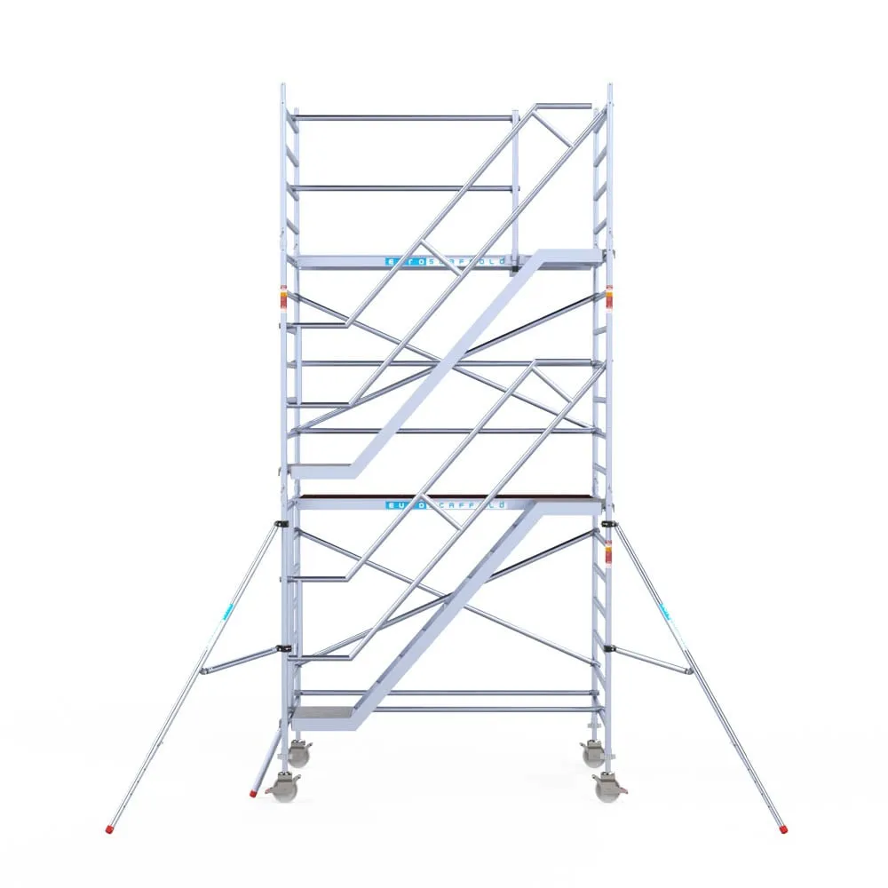 Wieża schodowa o szerokości 135 cm i długości 250 cm to gwarancja wygody i bezpieczeństwa. Wygodnie wniesiesz sprzęt oraz bezpiecznie wejdziesz na żądaną wysokość!