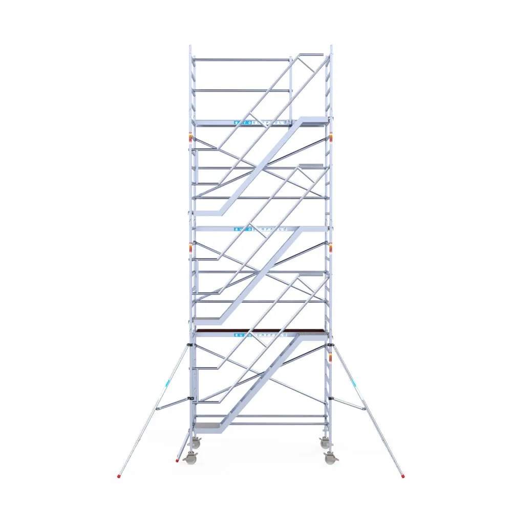 Wieża schodowa o szerokości 135 cm i długości 250 cm to gwarancja wygody i bezpieczeństwa. Wygodnie wniesiesz sprzęt oraz bezpiecznie wejdziesz na żądaną wysokość!
