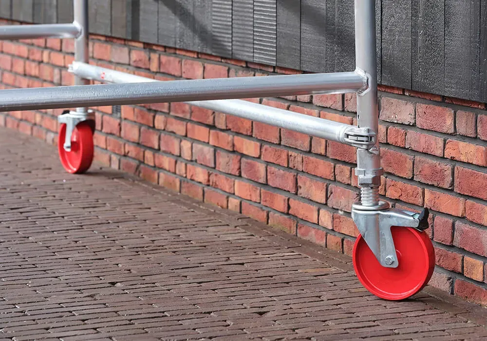 Altrex 4100 PLUS umożliwia płynną regulację, co szczebel bez przepinania stężeń. Rusztowania posiadają antypoślizgowe, profilowane szczeble. Średnica zastosowanych rur to 50 mm.