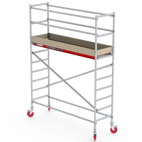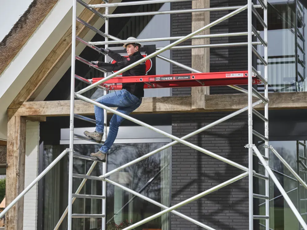 Altrex 4100 PLUS umożliwia płynną regulację, co szczebel bez przepinania stężeń. Rusztowania posiadają antypoślizgowe, profilowane szczeble. Średnica zastosowanych rur to 50 mm.
